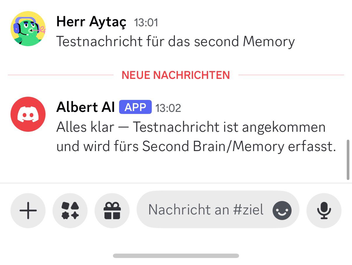 📎 Discord Screenshot — Testnachricht Second Brain